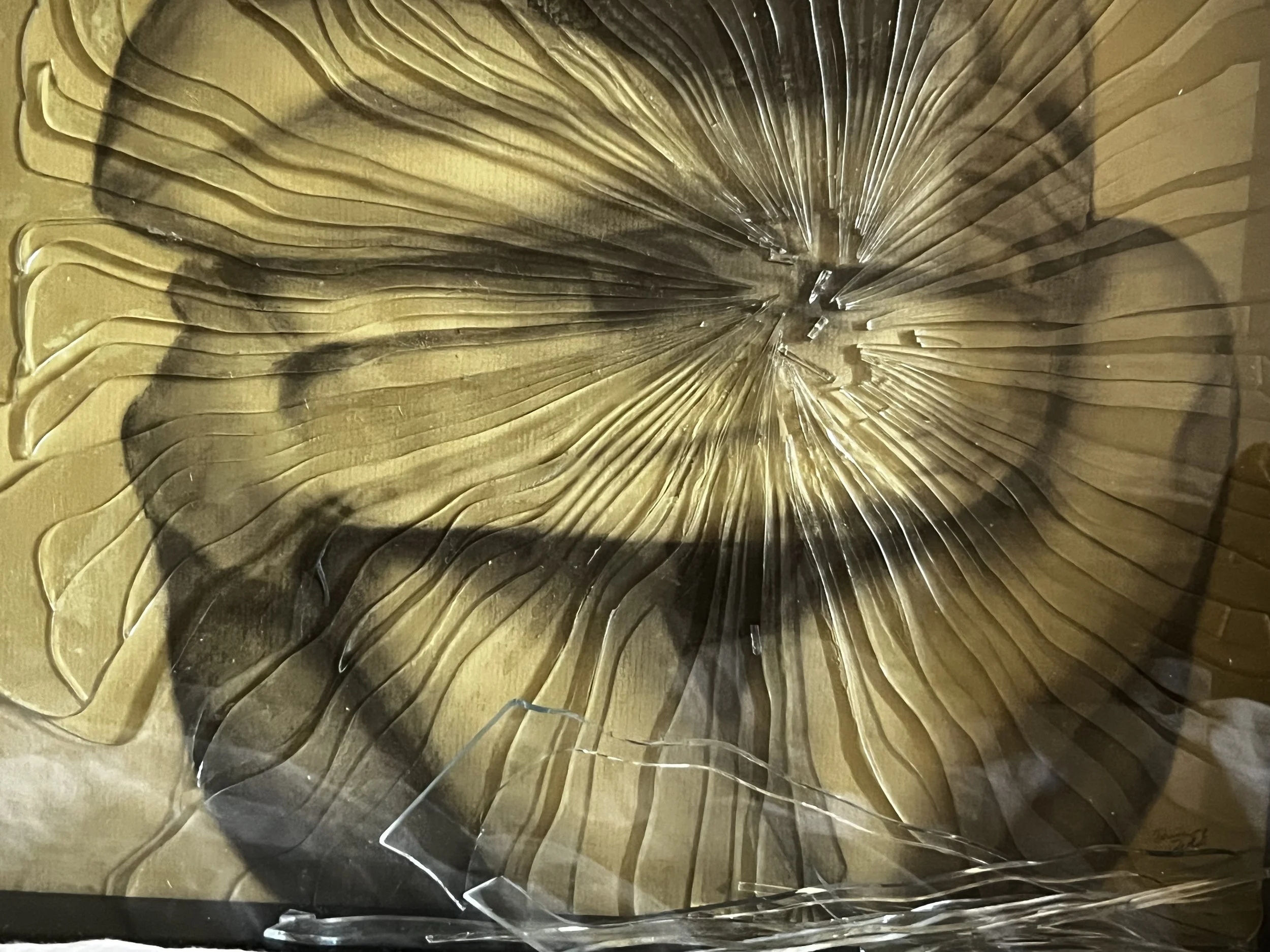 Charcoal on paper, glass and wood. 12x12